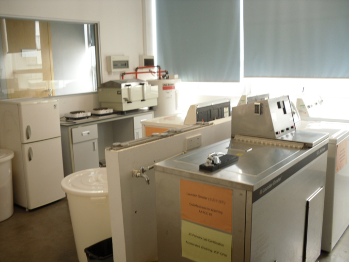實驗室主要功能房有:洗水(縮水、掉色)試驗房、化學成份試驗房、布燃燒試驗房、光的色牢度試驗房、暗房(顏色辨別)、恒溫/恒濕控制房(物理測試)。